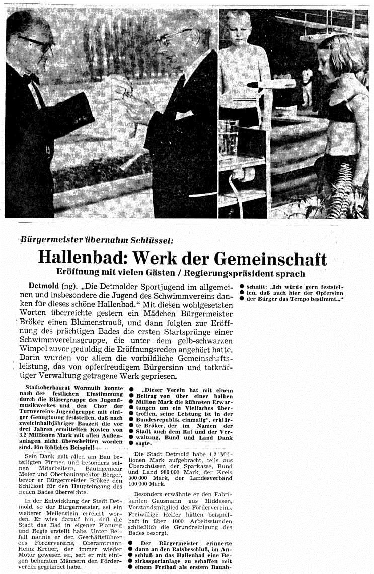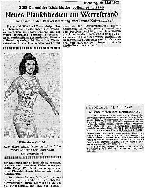Weiter gelang es der Vereinsführung, dem Detmolder Publikum bekannte deutsche Spitzenschwimmer sowie die damalige deutsche Meisterin im Kunstspringen Paula Vatarek und den Europameister im Turmspringen Günter Haase vorzustellen.