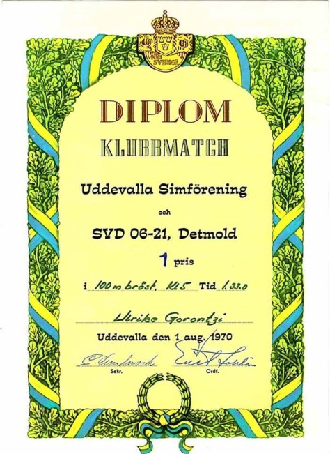 Im selben Jahr holte der Verein auf dem großen Schwimmfest in Bad Oeynhausen mit der 4x50m Lagenstaffel den 1. Preis mit Hogrefe, Uhle, Schnatmann und Kipp.